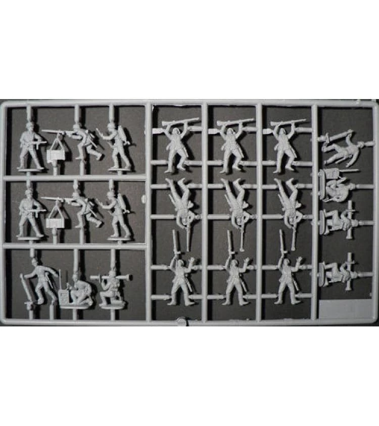 Wehrmacht war der Name der deutschen Armee während des Krieges an allen europäischen und nordafrikanischen Fronten für fast 6 Jahre, von 1939 bis 1945. Am 1. September 1939 drangen zwei Wehrmachtsarmee-Gruppen in Polen ein und begannen damit den Zweiten Weltkrieg. Die Modelle in diesem Kit repräsentieren Wehrmachts-Infanterie-Einheiten mit den typischen feldgrau-farbigen Uniformen und mit Einzelausrüstung bestehend aus einem Mauser K-98 Gewehr und einer MP40 Maschinenpistole.
