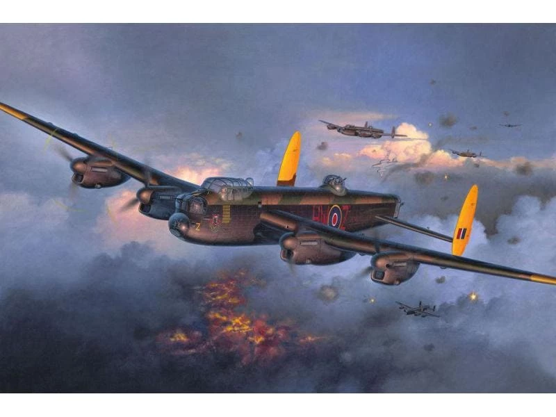Bei dem Avro Lancaster MK.III handelt es sich um einen schweren RAF-Bomber, der im Rahmen des Zweiten Weltkriegs eingesetzt wurde. Vor allem seine hohe Zuladung machte den Kampfflieger sehr gefährlich. Das Modell stellt diese Besonderheit dar und bietet insgesamt zwölf Bomben sowie eine Cookie-Bombe. Die Bombenschachtklappen mit Einzugsstreben sind ebenfalls nachgestellt worden. Zur Verteidigung stehen drei drehbare MG-Türme bereit. Die Kanzelverglasung des Flugzeugs ist mit verschiedenen Anbauausführungen versehen.
