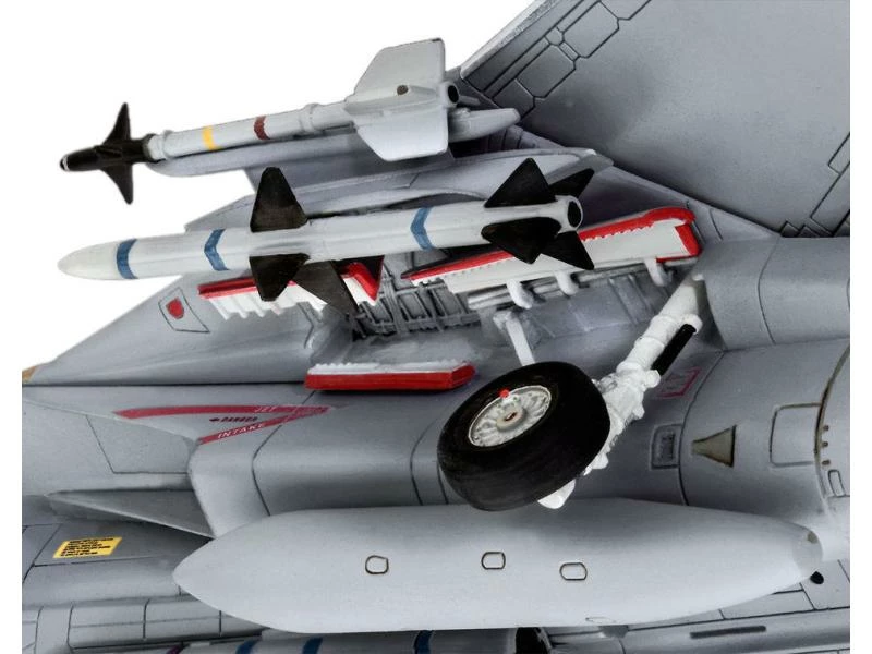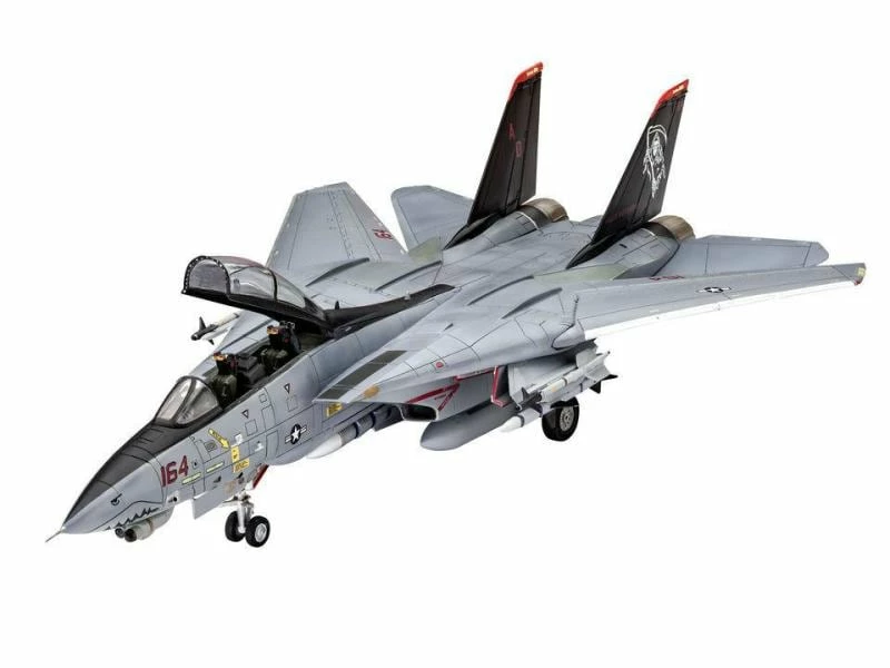 Über 30 Jahre lang war die F-14D Super Tomcat bei der US Navy im Einsatz. Es handelt sich dabei um ein trägergestütztes Waffensystem, das ein umfassendes Arsenal aufnehmen kann. Im Modellbauset liegen zwei Sidewinder-Lenkwaffen, zwei Sparrow-Raketen sowie eine Phoenix-Lenkwaffe bei, die unterhalb des Flugzeugrumpfes befestigt werden können. Auch die beiden Zusatztanks des Originals wurden beim Modell berücksichtigt. Das Cockpit wurde filigran herausgearbeitet. Nicht nur die Sitze, sondern auch die Armaturen erinnern stark an das reale Vorbild. Auch das Fahrwerk zeigt zahlreiche Feinheiten und ist originalgetreu nachgestaltet. Die Schwenkflügel des Modells sind auch nach dem Einbau beweglich. Abziehbilder zur Beschriftung runden das authentische Gesamtbild passend ab.