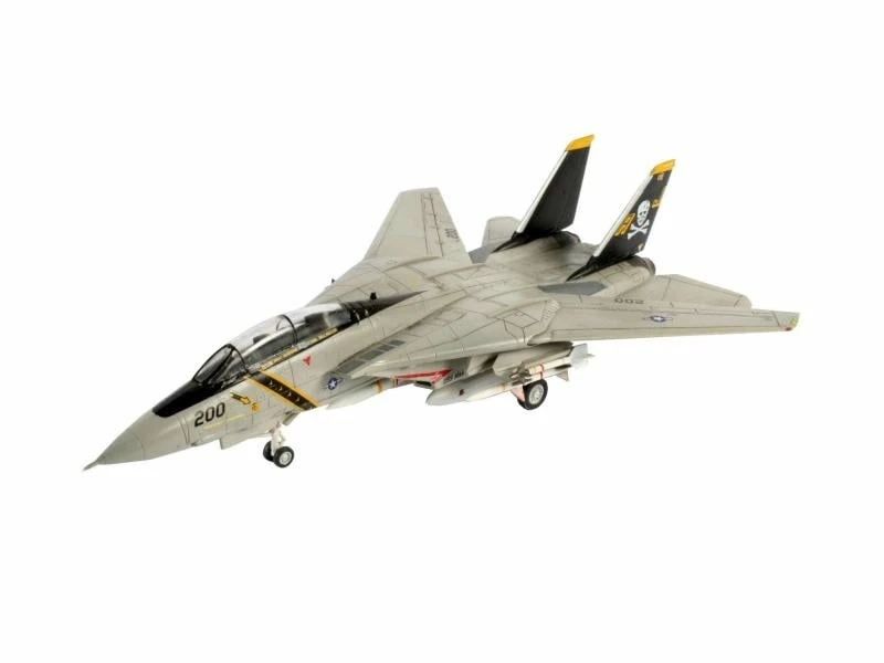 Die F-14A Tomcat gehörte über Jahrzehnte zu den wendigsten und leistungsstärksten Abfangjägern der Welt. Auch wegen des umfangreichen Waffenarsenals kam der Kampfjet bei der US Navy häufig zum Einsatz. Der Modellnachbau deutet das breitgefächerte Waffensystem an. Zwei Phoenix-Lenkwaffen sowie zwei Sidewinder-Raketen liegen dem Set bei und können unterhalb der Tragflächen montiert werden. Weiterhin liegen zwei Versionen von Abziehbildern der VF-84 Jolly Rogers der US Navy bei, welche für ein noch authentischeres Gesamtbild sorgen.