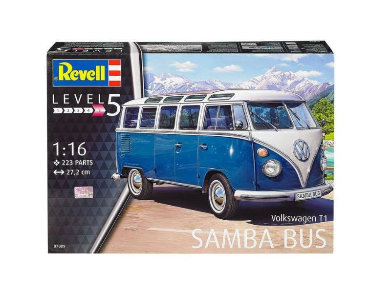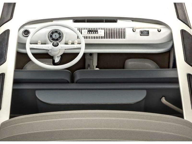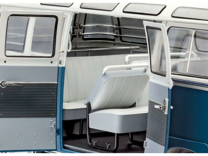 Mit dem VW T1 Samba Bus Bausatz von Revell können Sie den beliebten, in den 50er Jahren eingeführten Kleinbus des Wolfsburger Automobilbauers nachbauen. Die Karosserie des Modells besteht aus mehreren Einzelteilen und zeigt zahlreiche Details des Originals. Die Türen sowie die Heckklappe lassen sich auch nach der Montage noch öffnen. Weiterhin haben Sie die Möglichkeit, das Dach des Modells geschlossen oder als zusammengeschobenes Faltdach zu gestalten. Eine Vielzahl an Chromteilen wie Türgriffe, Scheibenwischer oder Radkappen sorgen für ein noch glaubwürdigeres Gesamtbild.