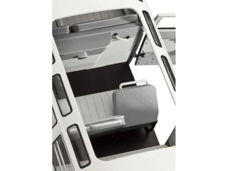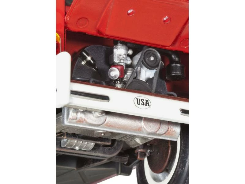 Nicht nur die Karosserie, sondern auch der Innenraum ist authentisch gestaltet. Die Armaturen des T1 sind auch beim Modell erkennbar. Auch der Motor ist mit zahlreichen Details versehen. Die Stossstange bietet weiteres Potential für Anpassungen. Wahlweise können Sie eine europäische oder eine amerikanische Ausführung verbauen.
